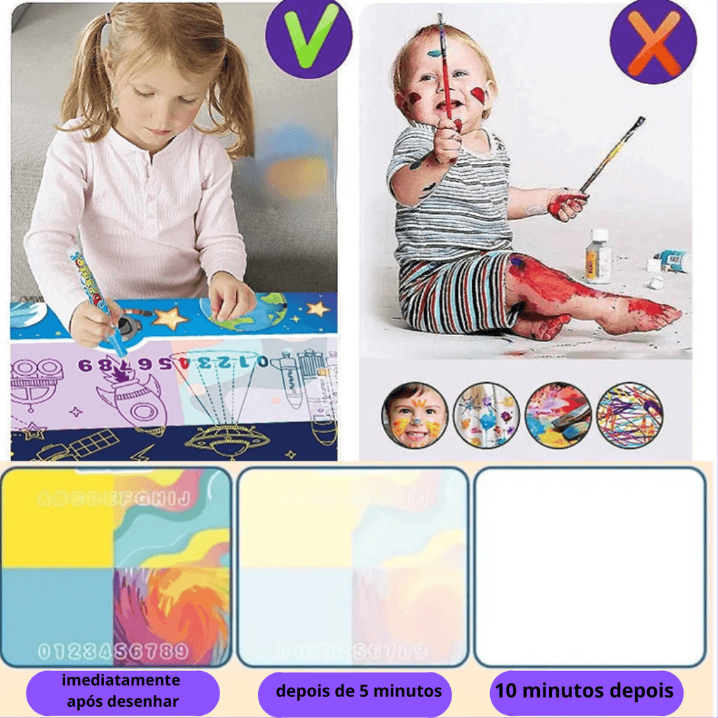 O Tapete Mágico é a solução ideal para estimular a criatividade das crianças sem bagunça. Com tecnologia inovadora, os desenhos desaparecem após 10 minutos, permitindo que a diversão continue sem precisar de papel ou tinta.