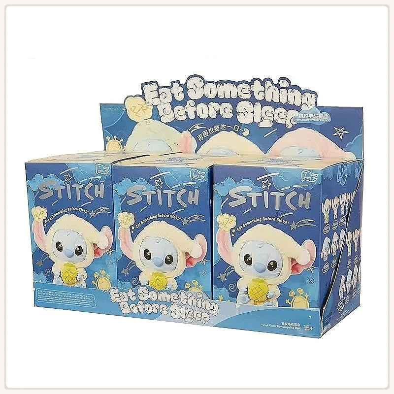 Descubra a magia das surpresas com o chaveiro estilo labubu do Stitch! São mini pelúcias colecionáveis do personagem Stitch, inspiradas na série "Eat Something Before Sleep", com modelos fofos e exclusivos como pizza, donut, abacaxi e muito mais.