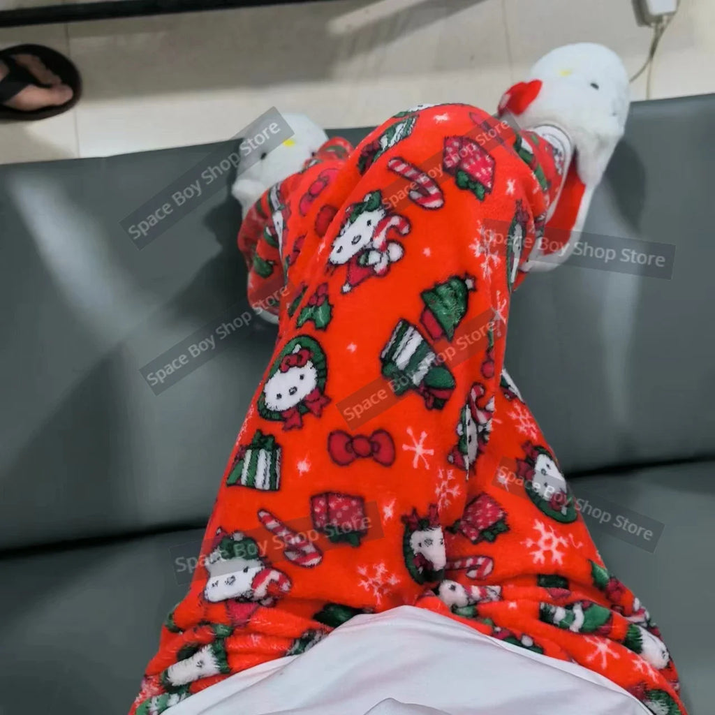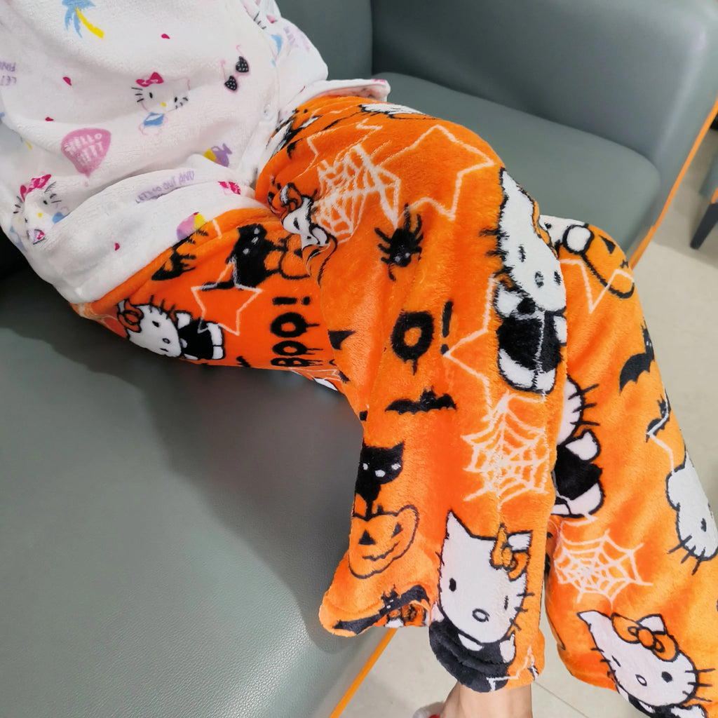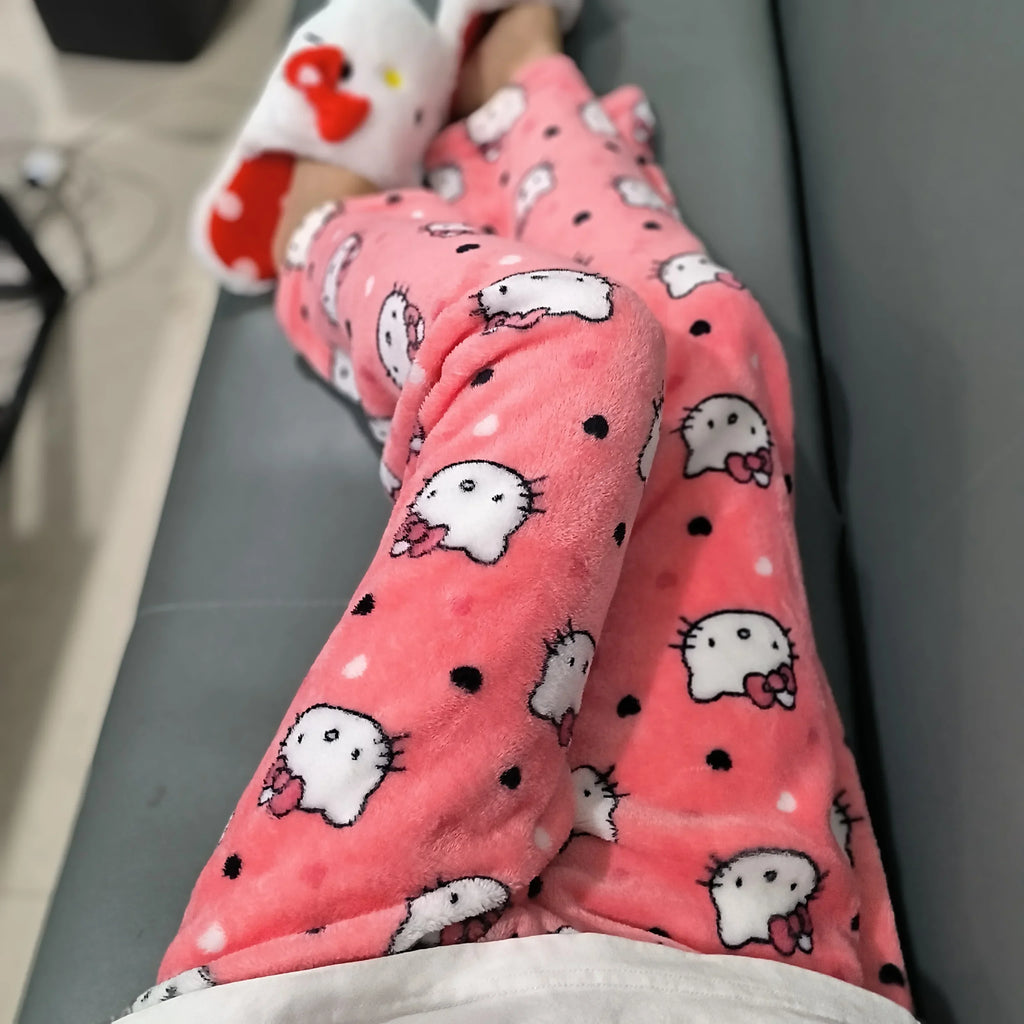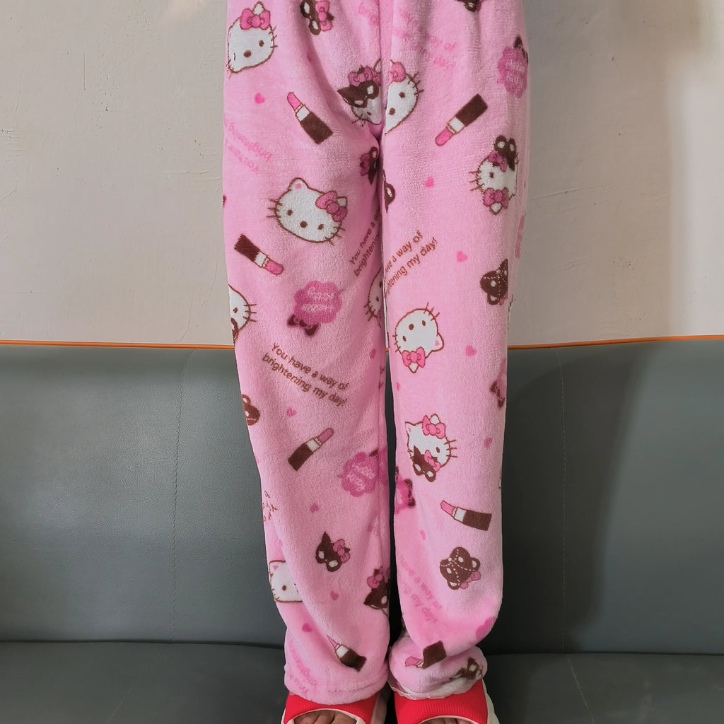 A Calça de Pijama Sanrio em fleece coral é perfeita para quem ama conforto com um toque de estilo Kawaii. Feita com tecido flanelado e super macio, ela é ideal para os dias mais frios e garante um toque aveludado na pele.