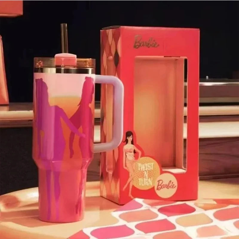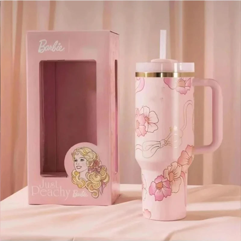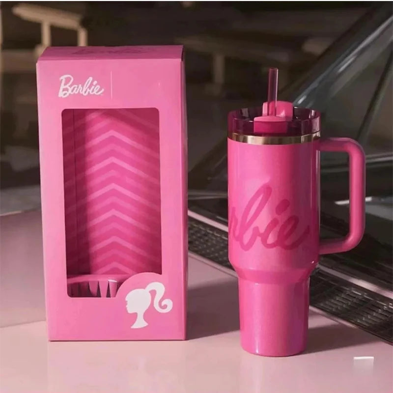 Copo Térmico Barbie 40oz – Aço Inoxidável, Tampa com Canudo, Parede Dupla