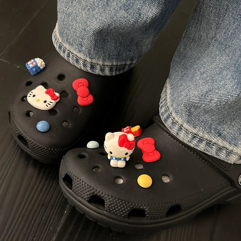 O Pingente para Calçados Estilo Hello Kitty é um acessório decorativo ideal para personalizar sapatos com furos, como Crocs e modelos similares. Com design em formato de personagem sentado, o pingente adiciona um toque divertido e criativo ao visual, sendo perfeito para quem gosta de customização.